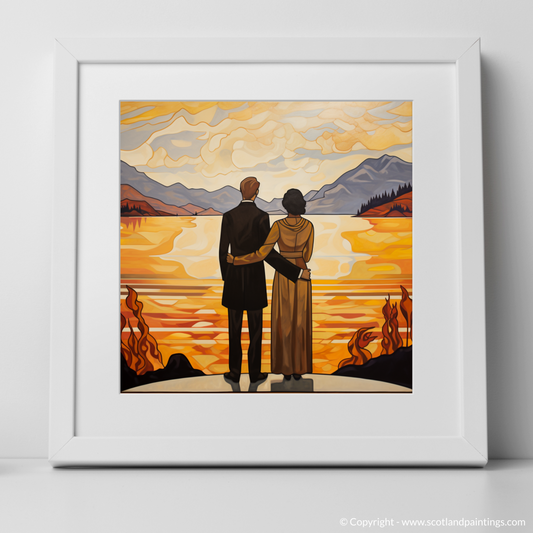 Painting and Art Print of A couple holding hands looking out on Loch Lomond entitled "Twilight Embrace by Loch Lomond".
