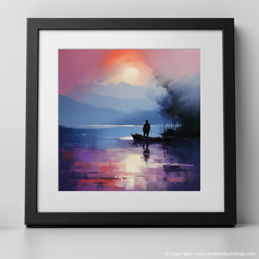 Painting and Art Print of Silhouetted fisherman on Loch Lomond entitled "Dusk Reflections on Loch Lomond".
