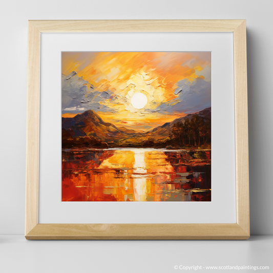 Painting and Art Print of Golden hour at Loch Lomond entitled "Golden Hour Embrace at Loch Lomond".