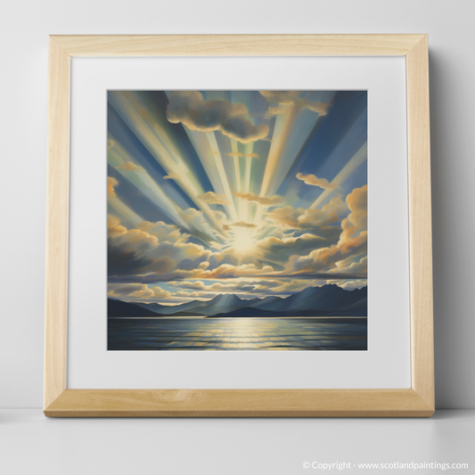 Painting and Art Print of Sun rays through clouds above Loch Lomond entitled "Sunburst over Loch Lomond".