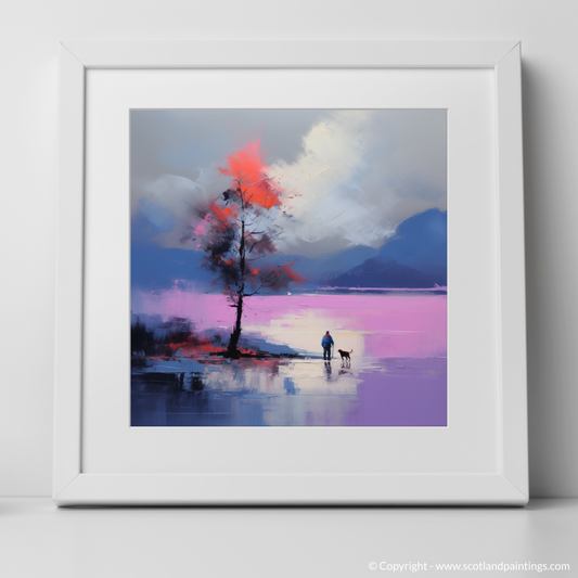 Painting and Art Print of A man walking dog at the side of Loch Lomond entitled "Companions by Loch Lomond: An Expressionist Journey".