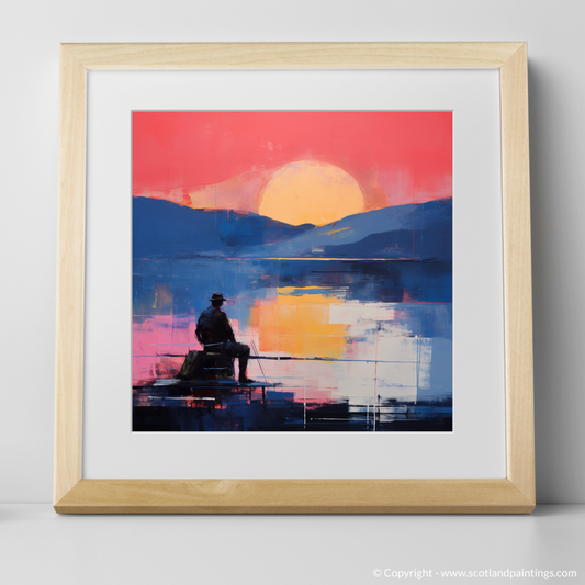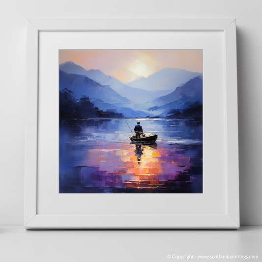 Painting and Art Print of Silhouetted fisherman on Loch Lomond entitled "Silhouetted Fisherman at Dusk on Loch Lomond".