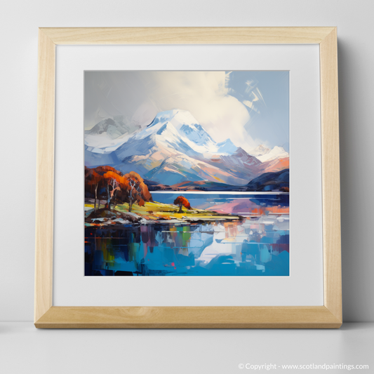 Painting and Art Print of Snow-capped peaks overlooking Loch Lomond entitled "Highland Majesty: Snow-capped Peaks and Loch Lomond in Expressionist Glory".