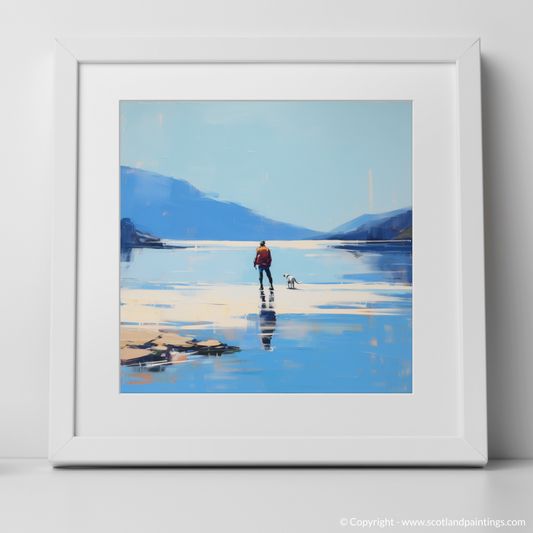 Painting and Art Print of A man walking dog at the side of Loch Lomond entitled "Stroll by the Shores of Loch Lomond".