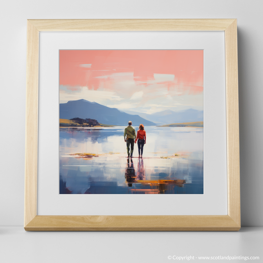Painting and Art Print of A couple holding hands looking out on Loch Lomond entitled "Embrace at Dusk: A Loch Lomond Reverie".