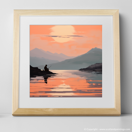 Painting and Art Print of Silhouetted fisherman on Loch Lomond. Silhouetted Serenity at Loch Lomond.