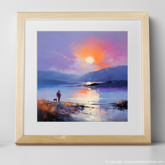 Painting and Art Print of A man walking dog at the side of Loch Lomond entitled "Twilight Promenade by Loch Lomond".