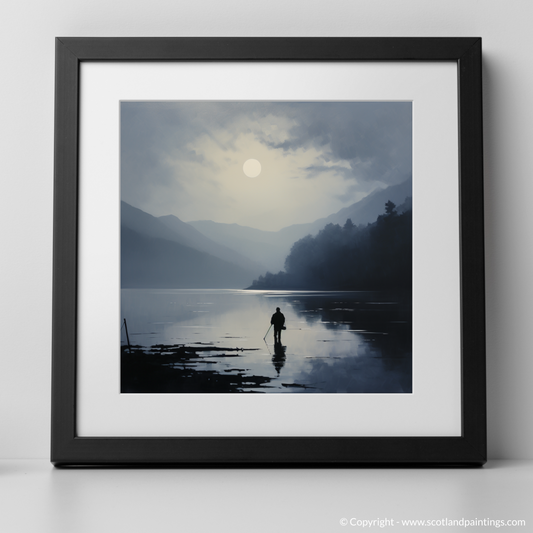 Painting and Art Print of Silhouetted fisherman on Loch Lomond entitled "Silhouetted Serenity on Loch Lomond".