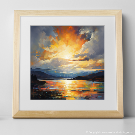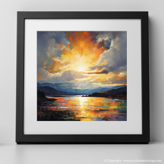 Painting and Art Print of Sun rays through clouds above Loch Lomond entitled "Sun Rays over Loch Lomond: An Expressionist Ode to Nature's Grandeur".