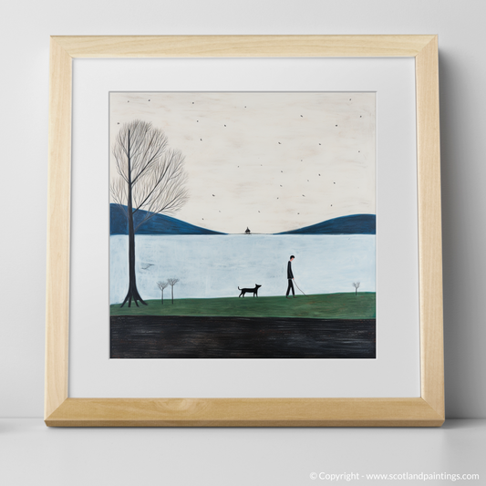 Painting and Art Print of A man walking dog at the side of Loch Lomond entitled "Strolling Companion by Loch Lomond".