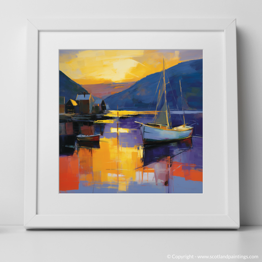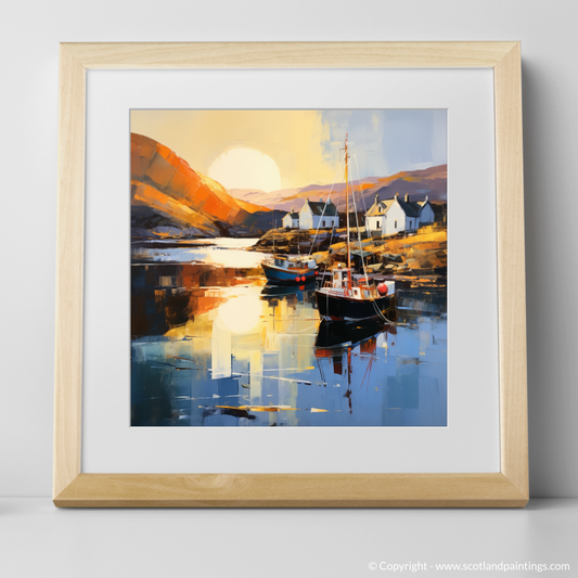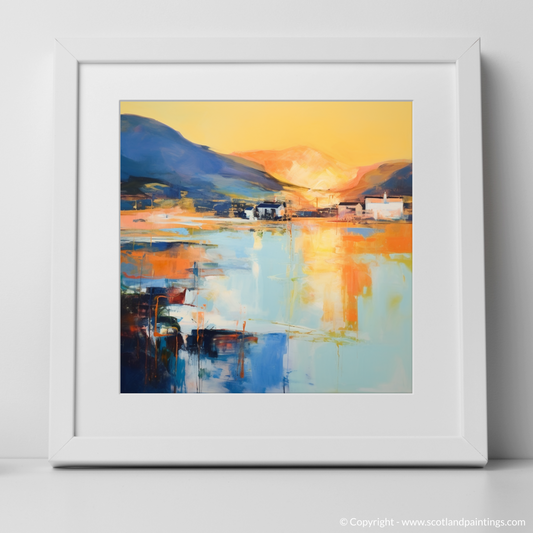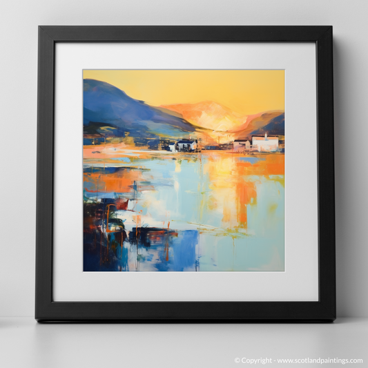 Painting and Art Print of Lochranza Harbour at golden hour. Golden Hour Embrace at Lochranza Harbour.