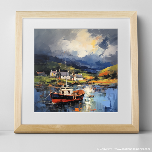 Painting and Art Print of Lochranza Harbour with a stormy sky. Storm's Embrace: Lochranza Harbour Revealed.