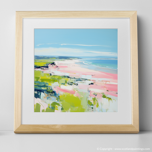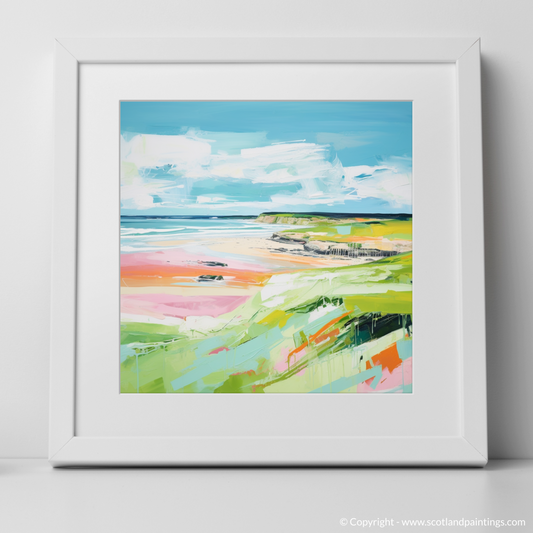 Painting and Art Print of Lunan Bay, Angus in summer entitled "Summer's Embrace at Lunan Bay - An Expressionist Tribute to Scotland's Shore".