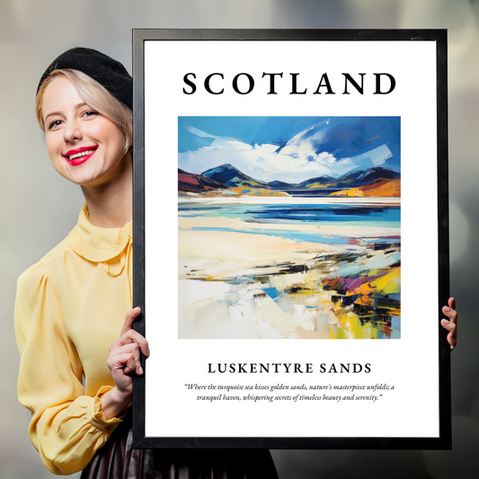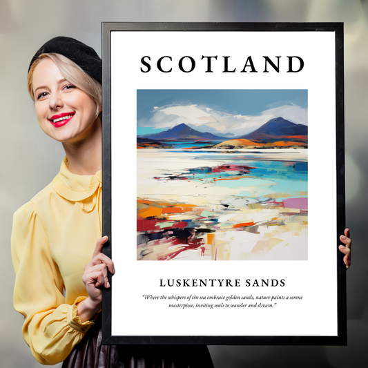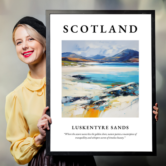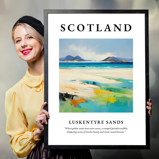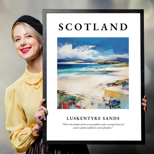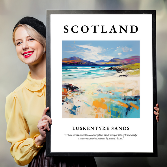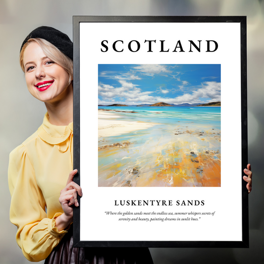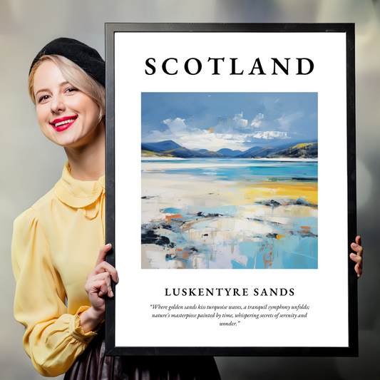 Envision the allure of Luskentyre Sands on your wall, as a framed print that not only symbolises beauty but also embodies the serene escape this Scottish paradise offers. As a gift, it promises to stir the soul with memories or dreams of a land where sea, sky, and sand converge into a masterpiece of natural elegance.