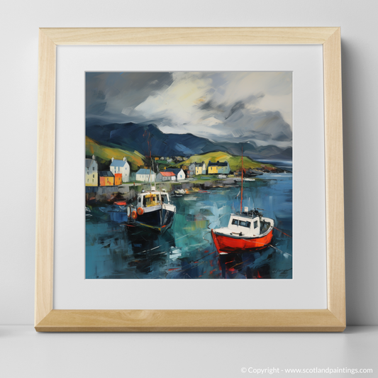 Painting and Art Print of Mallaig Harbour with a stormy sky entitled "Storm over Mallaig Harbour: An Expressionist Ode to Scottish Seascapes".