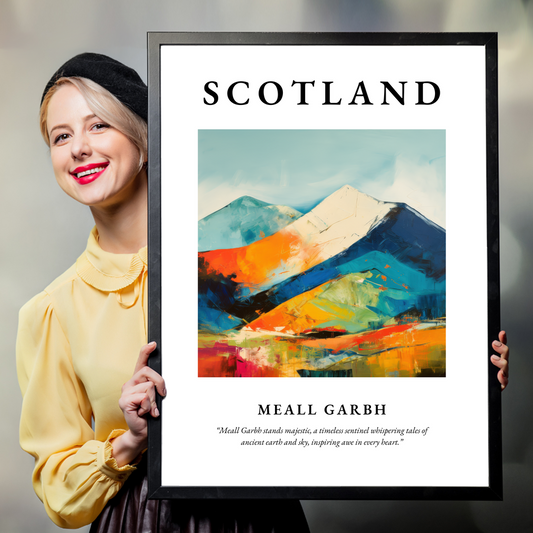Meall Garbh's textured landscapes, undulating terrain, and dramatic weather patterns provide a raw, natural beauty that echoes the spirit of the Romantic art movement. It is a haven for artists seeking to capture the untamed essence of Scotland's topography—the interplay of light and shadow across its slopes, the brooding clouds crowning its summit, and the hushed whispers of its winds. The constantly changing weather adds a dynamic quality to any canvas that seeks to encapsulate its stark yet warming presence.