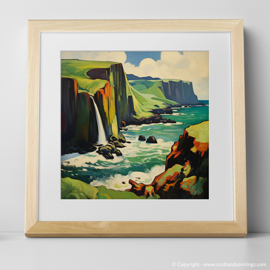 The misty atmosphere around Mealt Falls, often accompanied by a rainbow on sunny days, lends itself beautifully to the canvas, evoking a sense of the sublime that has long fascinated romantics and landscape painters alike. Artists and observers are drawn to its dynamic waters and the ever-changing moods of the Scottish sky—perfect conditions for a painting that conveys both the raw power and serene beauty of this celestial land.