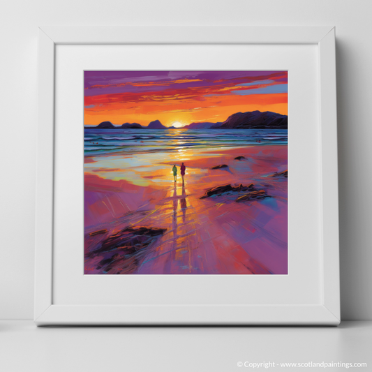 Painting and Art Print of Mellon Udrigle Beach at golden hour. Golden Hour Embrace at Mellon Udrigle Beach.