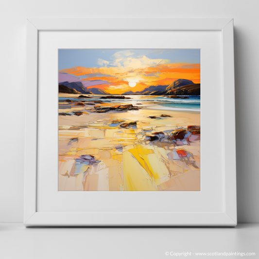 Painting and Art Print of Mellon Udrigle Beach at golden hour. Mellon Udrigle Beach at Golden Hour: An Expressionist Ode to Scottish Shores.