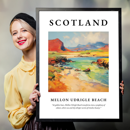 Immerse yourself in the enchanting beauty of Mellon Udrigle Beach by bringing a piece of it into your home. Our high-quality framed prints come in elegant black, sophisticated white, or natural wood frames to complement any interior design. Choosing a framed print from our collection not only graces your walls with the serene beauty of this Scottish haven but also serves as a constant reminder of the timeless elegance that nature crafts. A framed print of Mellon Udrigle Beach is more than just wall decor; it is a window to the soul-stirring panoramas of Scotland, making it an exquisite gift for someone special who venerates the grandeur of natural landscapes.