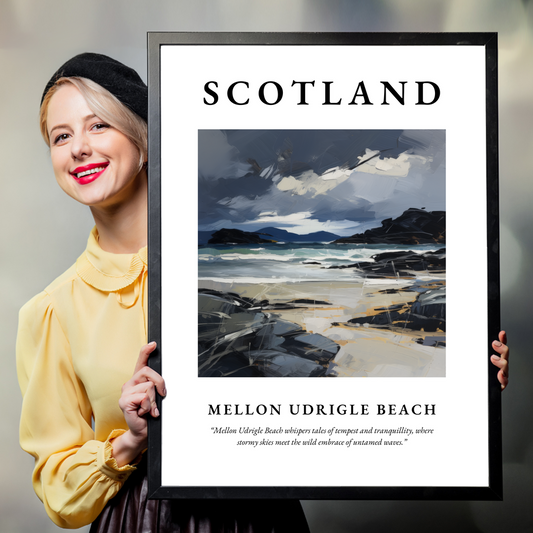 Immerse yourself in the enchanting beauty of Mellon Udrigle Beach by bringing a piece of it into your home. Our high-quality framed prints come in elegant black, sophisticated white, or natural wood frames to complement any interior design. Choosing a framed print from our collection not only graces your walls with the serene beauty of this Scottish haven but also serves as a constant reminder of the timeless elegance that nature crafts. A framed print of Mellon Udrigle Beach is more than just wall decor; it is a window to the soul-stirring panoramas of Scotland, making it an exquisite gift for someone special who venerates the grandeur of natural landscapes.