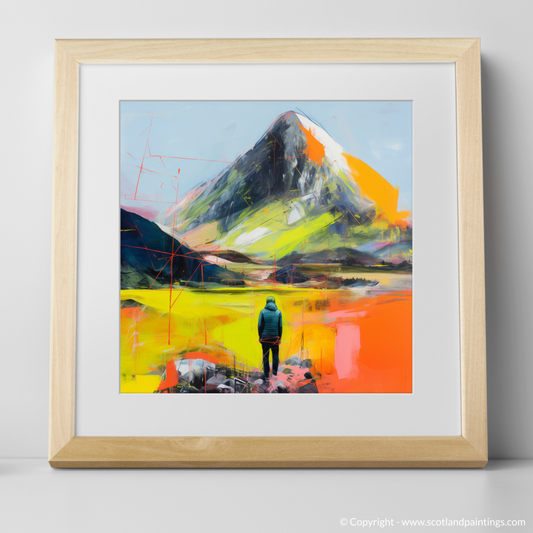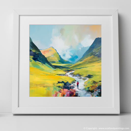 Painting and Art Print of Lone hiker in Glencoe during summer. Lone Hiker's Gaze: A Modern Vision of Glencoe in Summer.