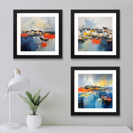 North Berwick Harbour with a stormy sky - Set of Three Prints