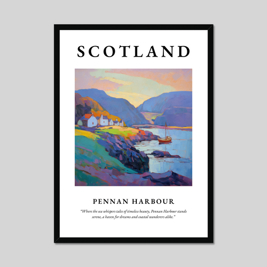 Our high-quality framed prints, available in black, white, or natural wood frames, are more than decor; they are a portal to the calming allure of Pennan Harbour. Each print is a captured echo of the tranquility that bathes the small fishing village, making them an ideal acquisition for anyone seeking to imbibe their space with the restorative ambiance of Scotland's coastal charm.