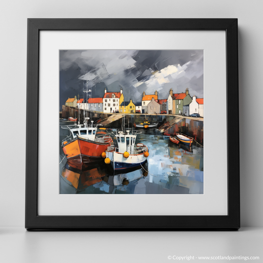 Painting and Art Print of Pittenweem Harbour with a stormy sky entitled "Stormy Serenity at Pittenweem Harbour".