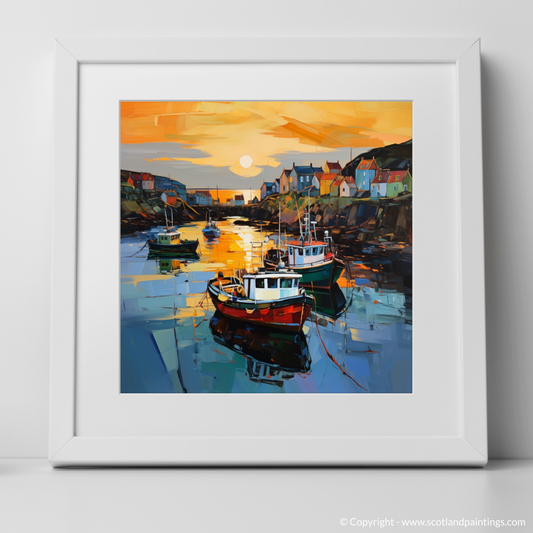 Painting and Art Print of Portnahaven Harbour at dusk entitled "Dusk at Portnahaven: An Expressionist Ode to Scottish Coastal Elegance".