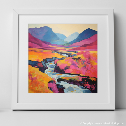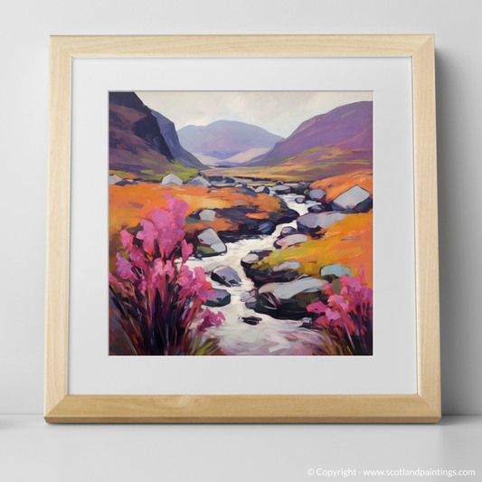 Painting and Art Print of Heather blooms by River Coe in Glencoe entitled "Heather Hues by the River Coe: An Abstract Vision of Glencoe's Wild Beauty".