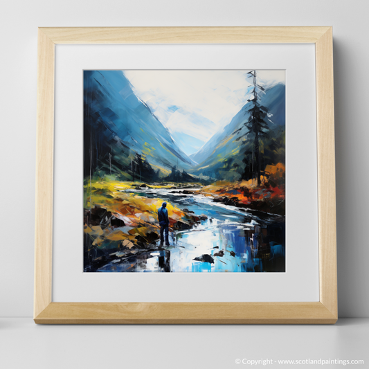 Painting and Art Print of Walker crossing River Coe in Glencoe. Walker's Journey Through the Heart of Glencoe.