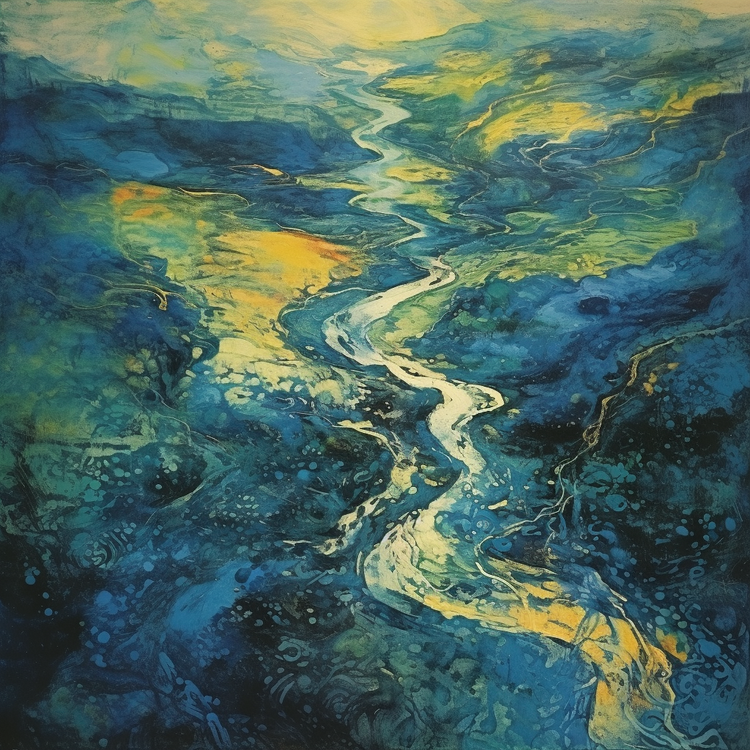 Painting and Art Print of River Deveron, Aberdeenshire entitled "Vibrant Deveron: An Expressionist Ode to Aberdeenshire's Dynamic Waterscape".