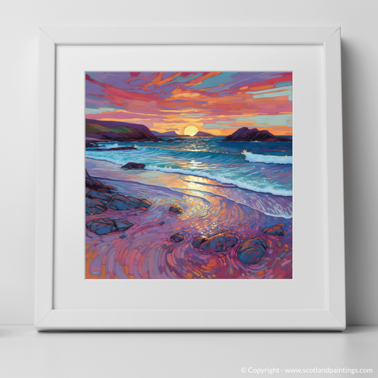 Painting and Art Print of Scarista Beach at dusk. Dusk Embrace at Scarista Beach.