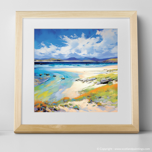 The natural wood frame option we offer complements the organic, earthy tones of Scarista Beach, enhancing the painting by bringing a touch of nature's own artistry into the presentation. This makes our framed Scarista Beach prints a perfect gift for someone special, who will appreciate the thoughtful combination of striking Scottish landscapes with the tasteful, rustic elegance of wood. Gift them a window to the Outer Hebrides, where every glance is a journey to the tranquil shores of Scarista Beach.