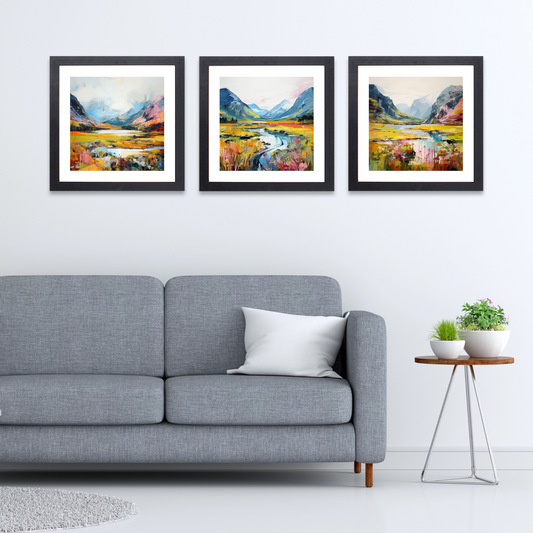 River Coe, Glencoe, Highlands in summer - Set of Three Prints
