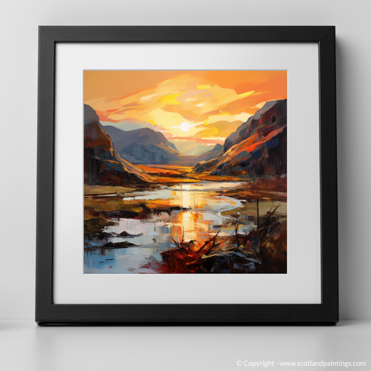 Painting and Art Print of Sunset glow in Glencoe entitled "Sunset Glow in Glencoe: An Expressionist Ode to Nature's Grandeur".