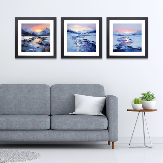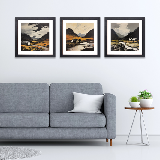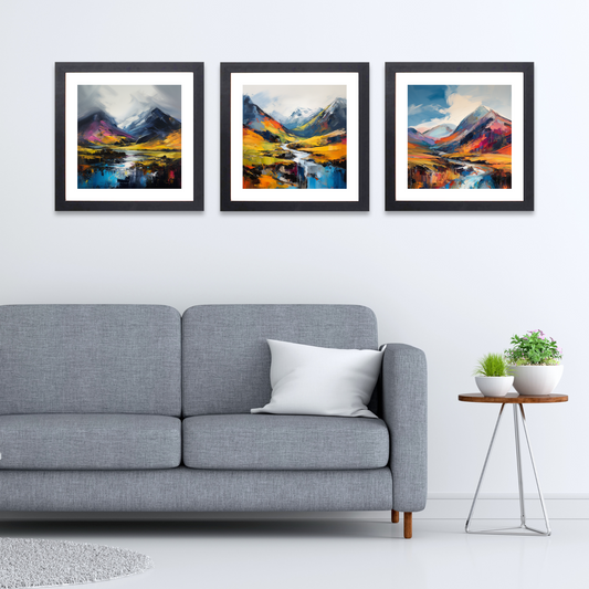 At ScotlandPaintings.com, we are passionate about bringing Scotland’s natural beauty into your home through stunning artwork. Our sets of three framed prints are a fresh and unique way to celebrate Scotland's landscapes. Carefully curated, these sets are designed to create a cohesive and striking feature for your walls.
