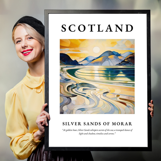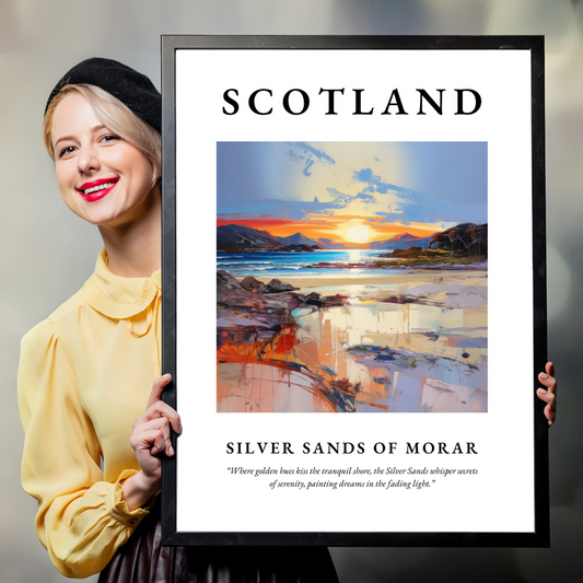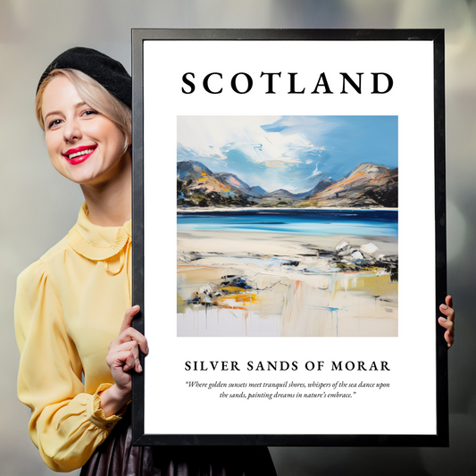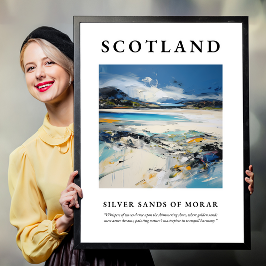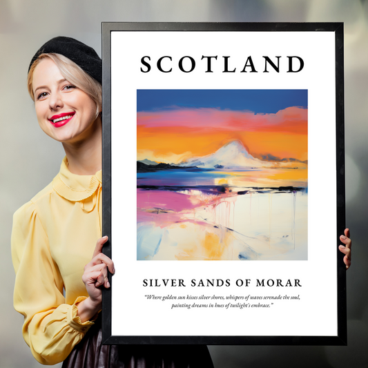 Welcome to the shimmering shores of the Silver Sands of Morar, a stretch of idyllic coastline that boasts some of Scotland's most breathtaking vistas and serves as an unparalleled muse for artists and photographers alike. Nestled in the Highlands, the Silver Sands are renowned for their gleaming white sands, crystal-clear turquoise waters, and panoramic views of the Small Isles. This ethereal landscape, where the sky meets the sea, creates a serene harmony that is mirrored in each lovingly crafted painting available on our site.