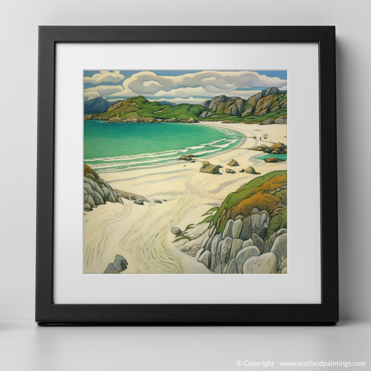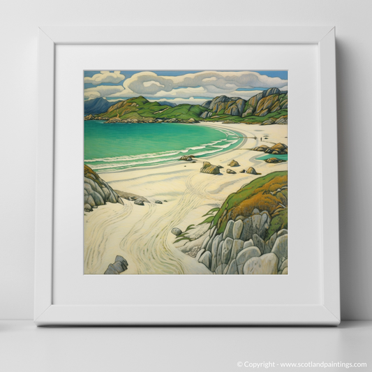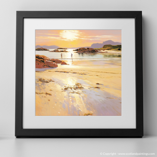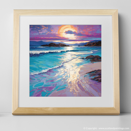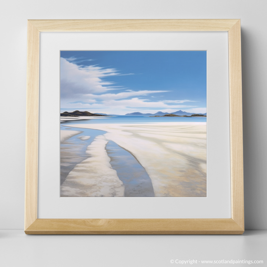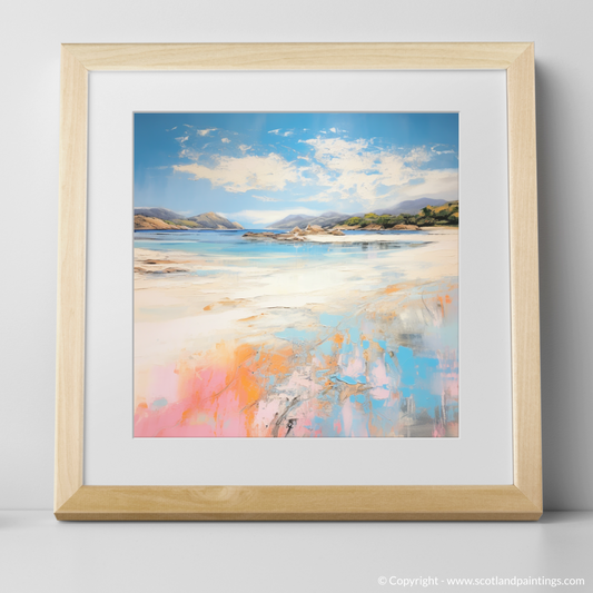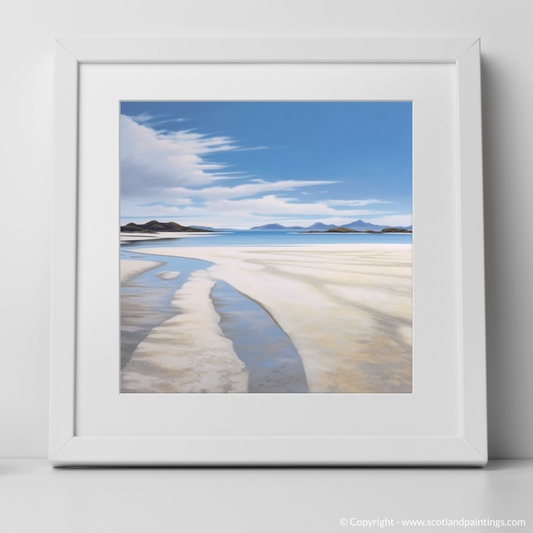 Welcome to the shimmering shores of the Silver Sands of Morar, a stretch of idyllic coastline that boasts some of Scotland's most breathtaking vistas and serves as an unparalleled muse for artists and photographers alike. Nestled in the Highlands, the Silver Sands are renowned for their gleaming white sands, crystal-clear turquoise waters, and panoramic views of the Small Isles. This ethereal landscape, where the sky meets the sea, creates a serene harmony that is mirrored in each lovingly crafted painting available on our site.