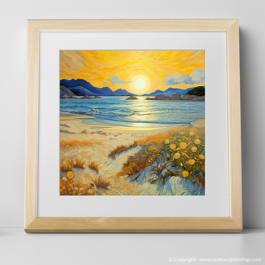 Welcome to the shimmering shores of the Silver Sands of Morar, a stretch of idyllic coastline that boasts some of Scotland's most breathtaking vistas and serves as an unparalleled muse for artists and photographers alike. Nestled in the Highlands, the Silver Sands are renowned for their gleaming white sands, crystal-clear turquoise waters, and panoramic views of the Small Isles. This ethereal landscape, where the sky meets the sea, creates a serene harmony that is mirrored in each lovingly crafted painting available on our site.
