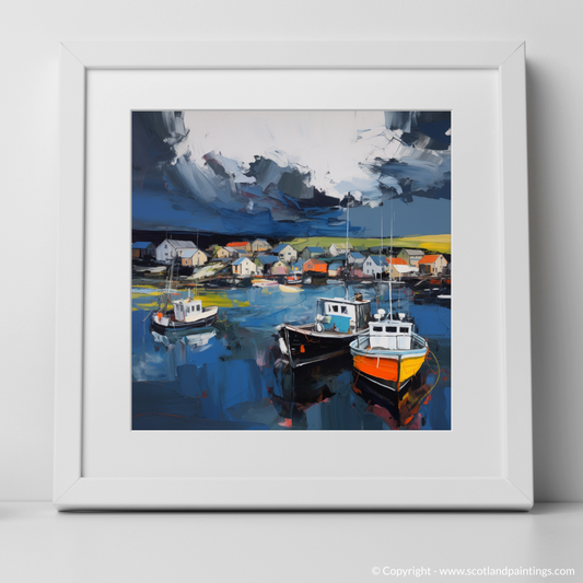 Painting and Art Print of St Abba's Harbour with a stormy sky entitled "Storm Over St Abba's Harbour: An Expressionist Ode to Scottish Resilience".
