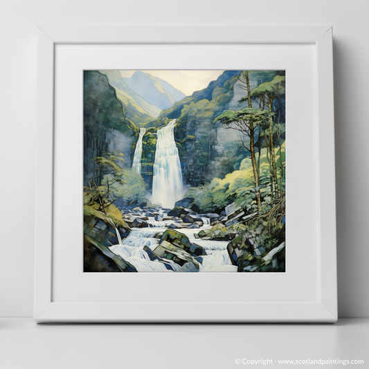 Majestic Cascade of Steall Falls: An Art Nouveau Tribute to Glen Nevis Splendour