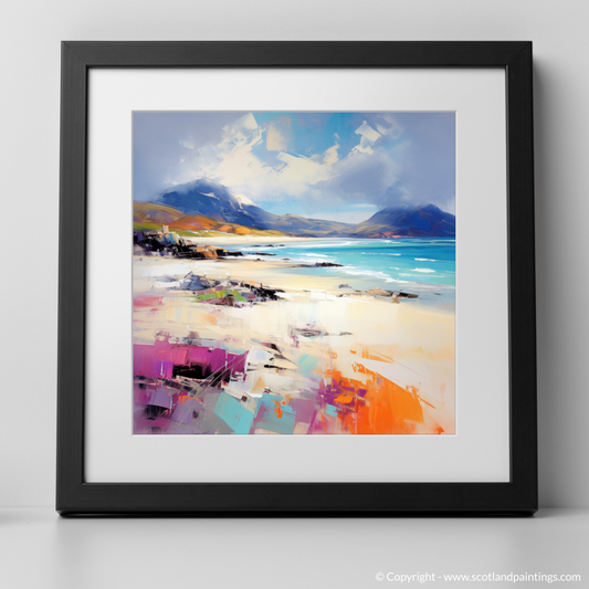 A feast for the eyes, the expansive sands of Traigh Mhor change hues with the tides and seasons. It's a place where the skies are as dramatic as the landscape, with shifting clouds casting shadows and light in an ever-changing spectacle. On sunny days, the beach glimmers like a precious gem, and in stormier weather it takes on a brooding, ethereal beauty. It is this chameleon-like nature that makes Traigh Mhor a favourite subject for artists, lending itself perfectly to various art styles—particularly Impressionism, where the play of light and colour can be expressed in bold, emotive strokes.