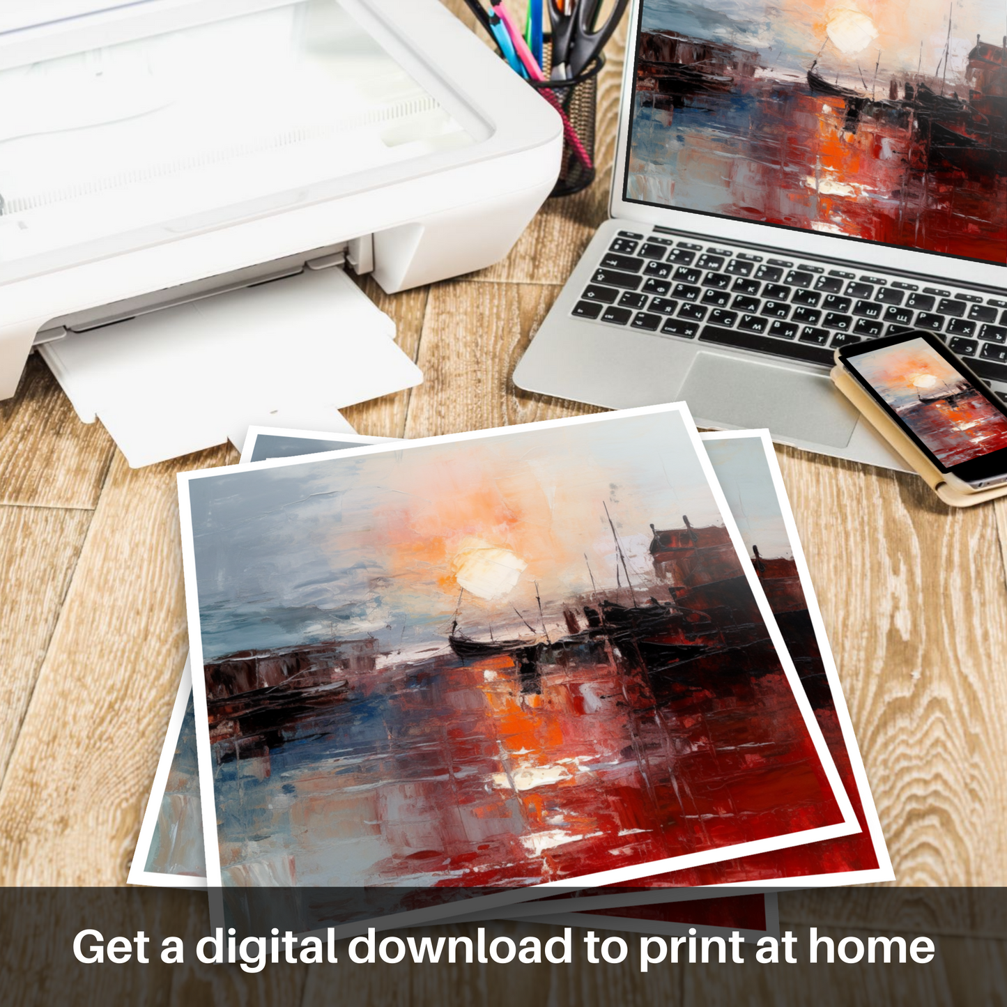 Ideal for admirers of maritime scenes and abstract art alike, this print promises to be a captivating addition to any collection, evoking the quiet majesty of Scotland’s harbours with every glance.