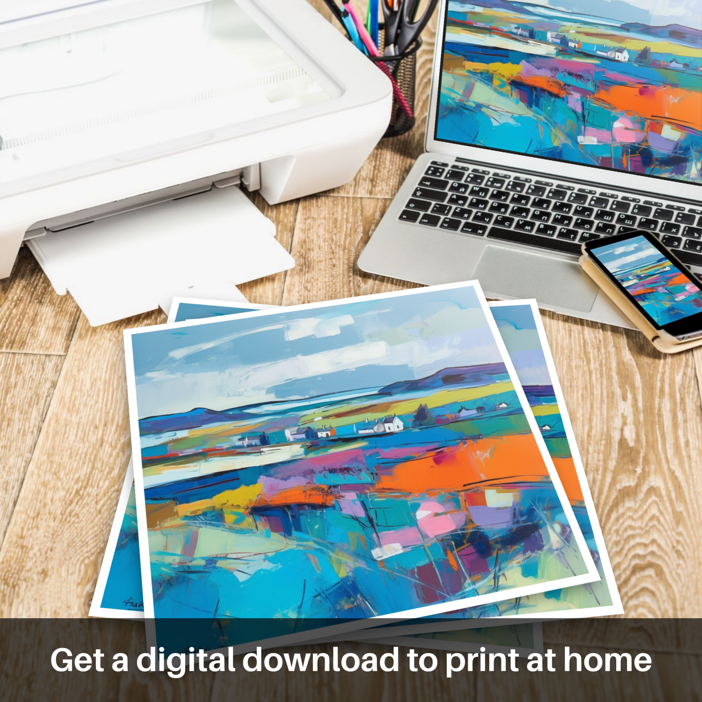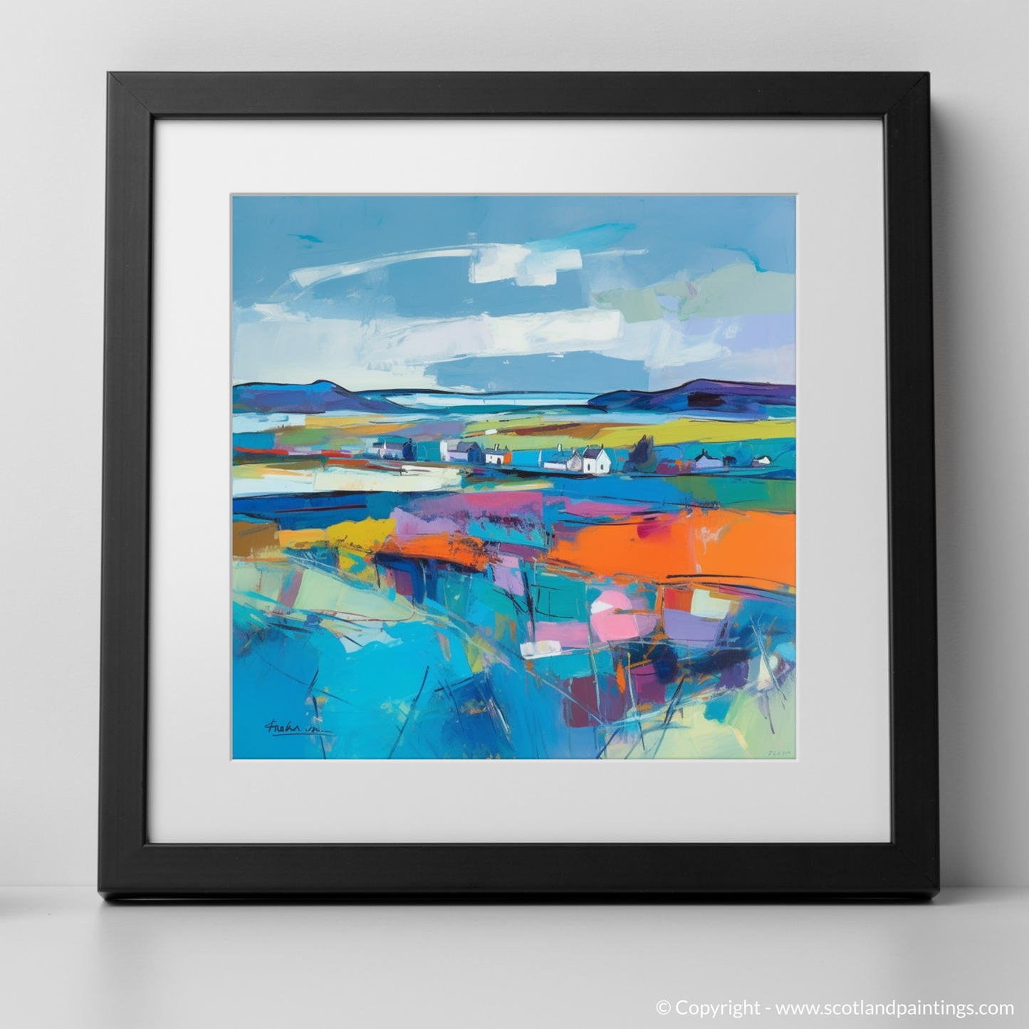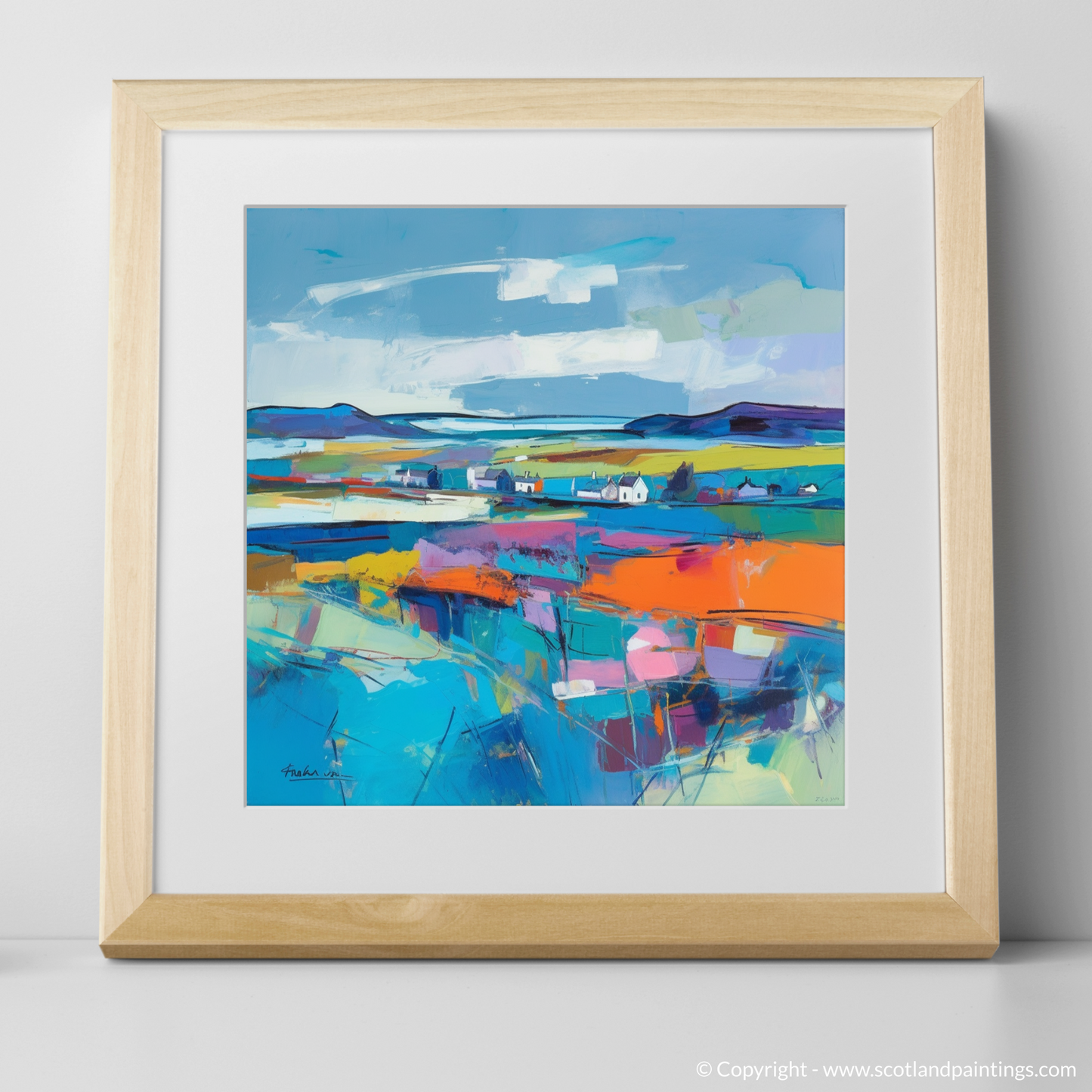 Each block of colour, though distinct, converses fluidly with its neighbours—creating a rich, layered tapestry that invites contemplation and offers the viewer a sensory homage to the rugged beauty of the Scottish Isles. This piece is not just a print but an invitation to lose oneself in the abstracted natural beauty of Scotland’s storied landscapes, making it a perfect addition for anyone seeking to bring a touch of Stornoway's serene coasts and vibrant colour palette into their space.