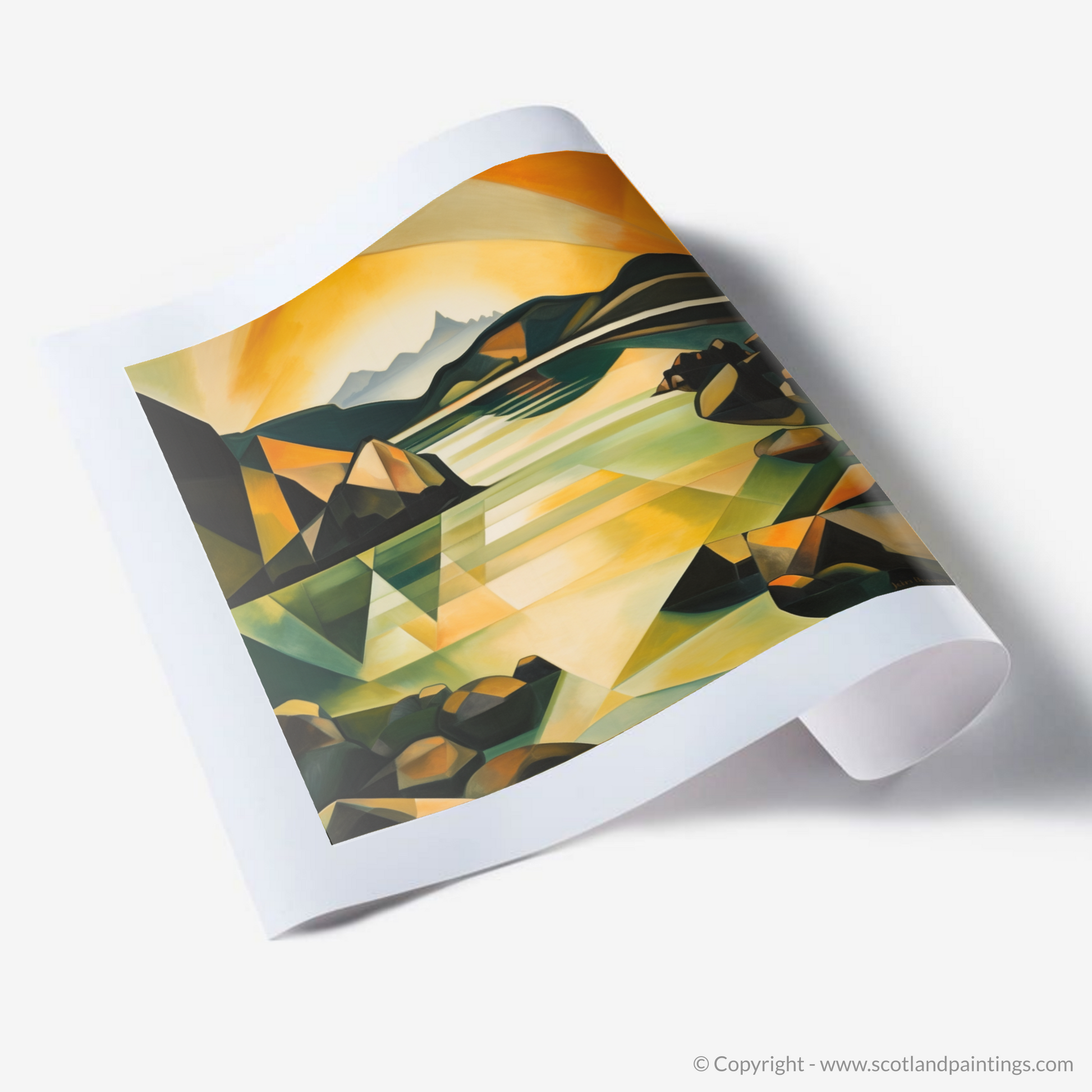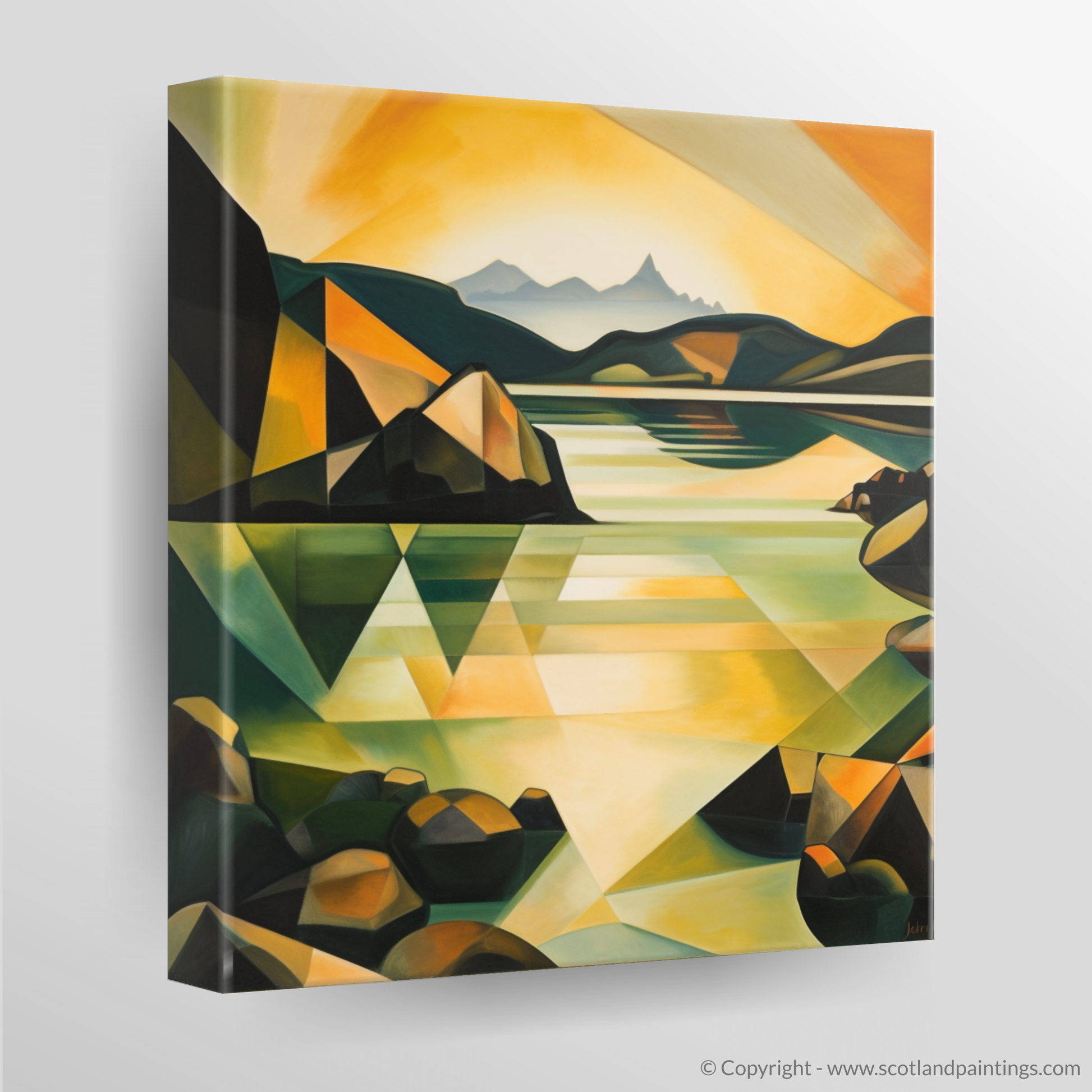 This print from the 'Scottish Beaches' collection offers a modernist perspective that challenges the conventions of landscape art, transporting the viewer to a place that is at once recognisable and abstracted. The careful orchestration of colour and form provides a feast for the eyes and a touch of avant-garde elegance to any interior, making it an ideal choice for connoisseurs of art who appreciate the splendour of Scotland's coastlines through the unique lens of Cubism.