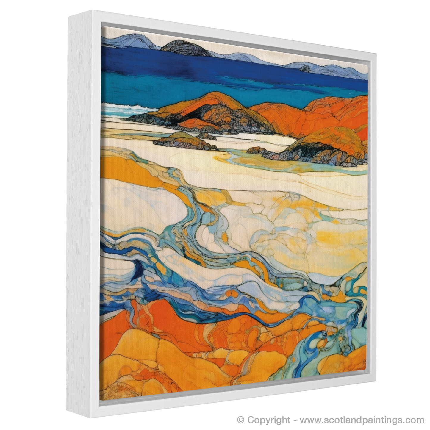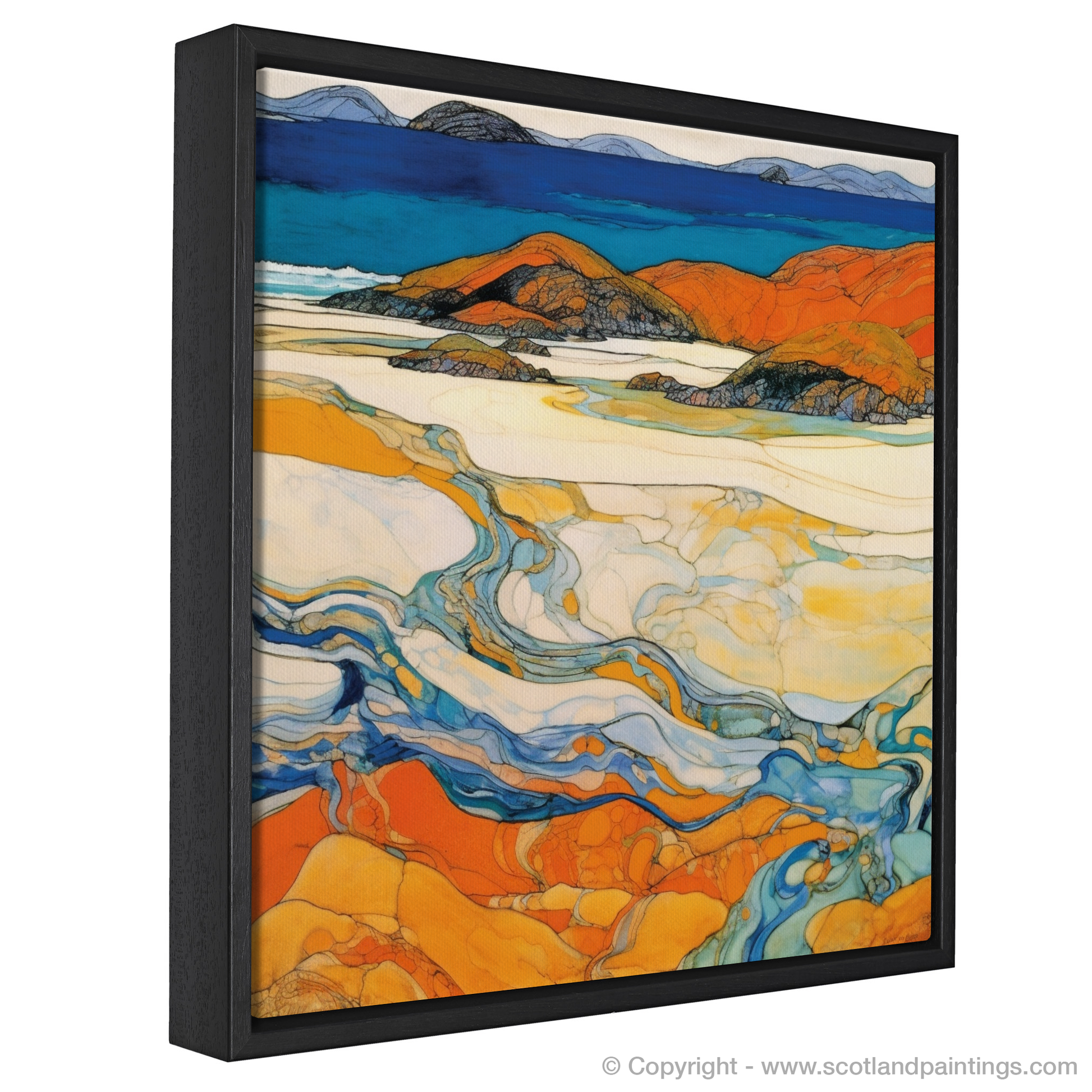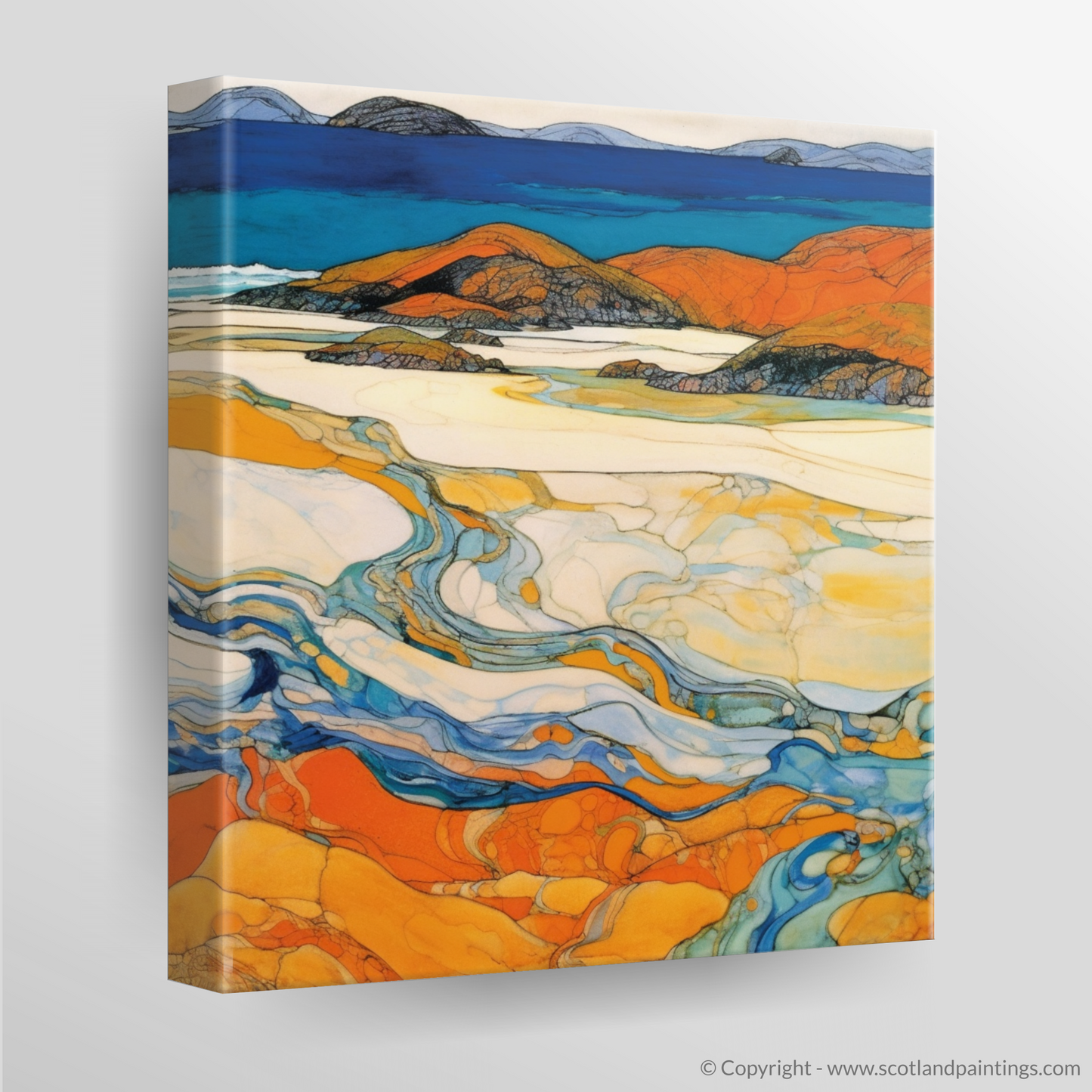 Immerse yourself in the serene beauty of Traigh Mhor, Isle of Barra, captured in this exquisite art print inspired by the unmistakable grace of the Art Nouveau movement. The sweeping curves and rich, organic forms are juxtaposed against the vivid, undulating beauty of this Scottish beach, making it a visual symphony that soothes the soul.