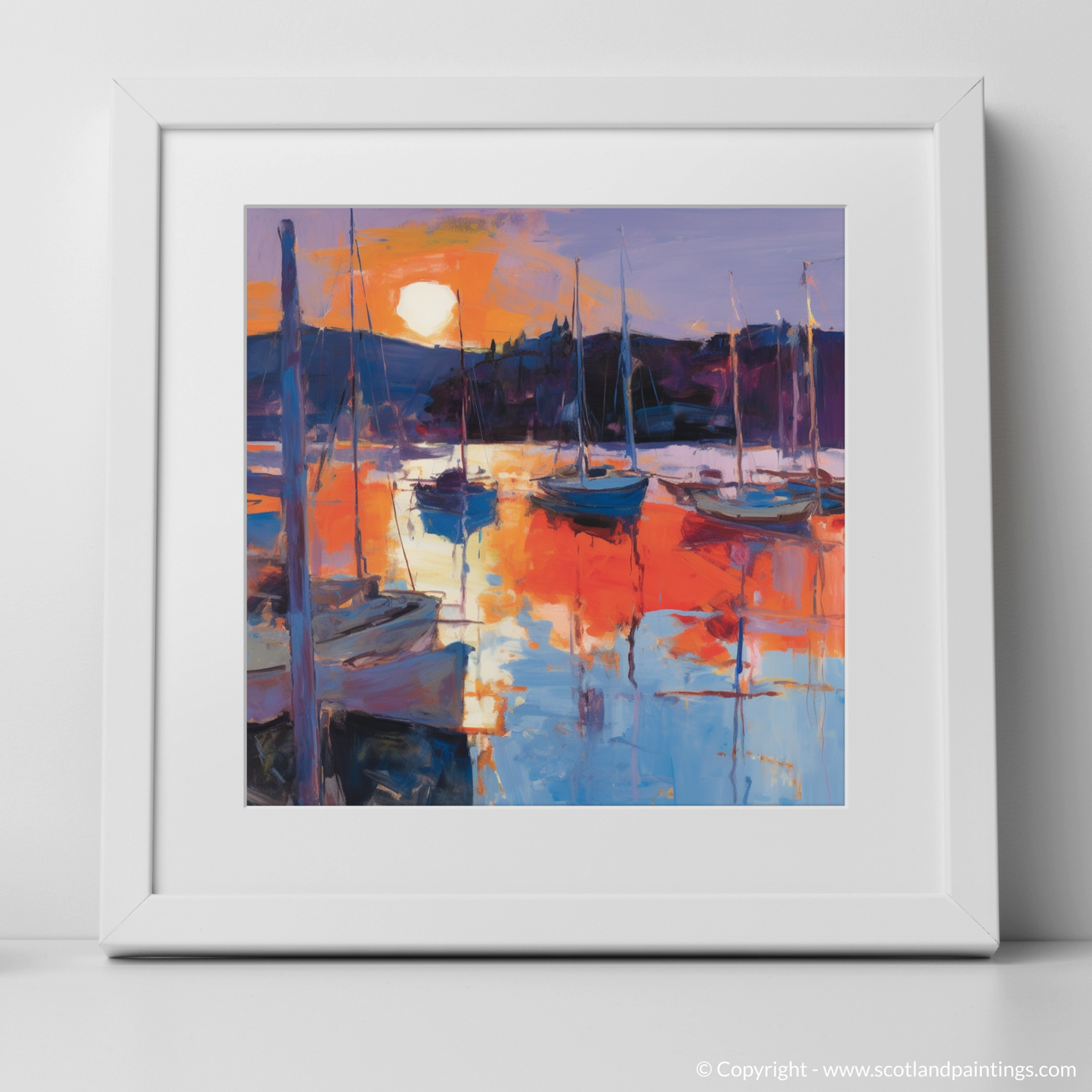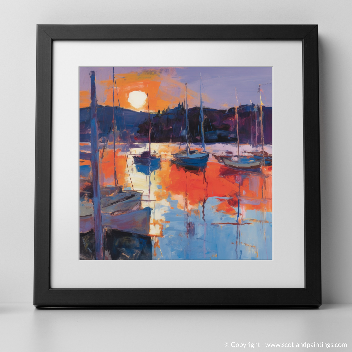 This print is a celebration of Scotland’s coastal beauty and harnesses the emotional power of a marina bathed in the glow of twilight. For lovers of art that speaks to the soul, this work captures the essence of a marina's quietude amidst nature's grand performance, promising to bring a touch of the Scottish sublime to any space it graces.
