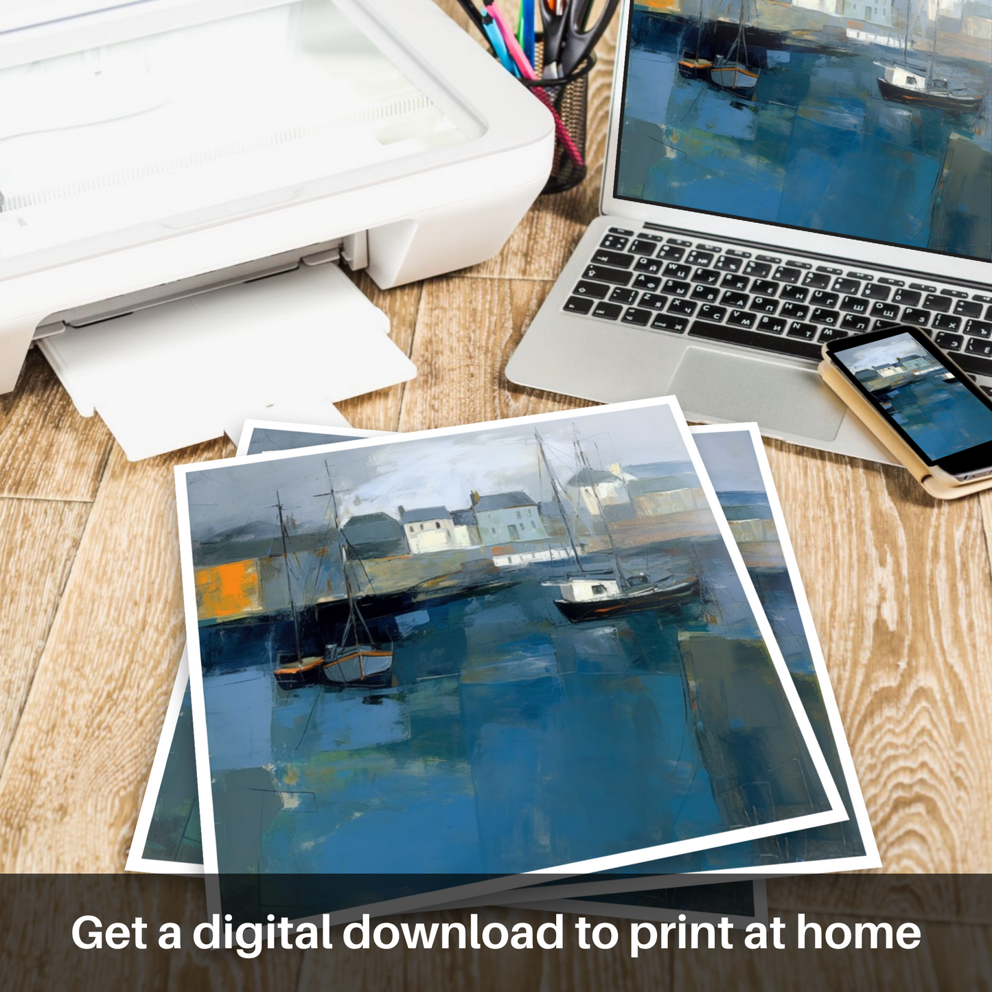 Part of the 'Scottish Harbours' collection, this print stands as a testament to the raw, enduring charm of Scotland's maritime landscapes, interpreted through the lens of Abstract Impressionism. Each element within the work collaborates to convey a feeling of the unyielding spirit of the region, making this piece not just a tribute to Charlestown Harbour but also to the artistry that can capture such tempestuous elegance in stillness.